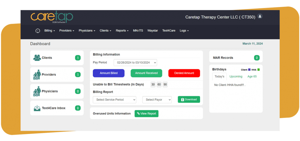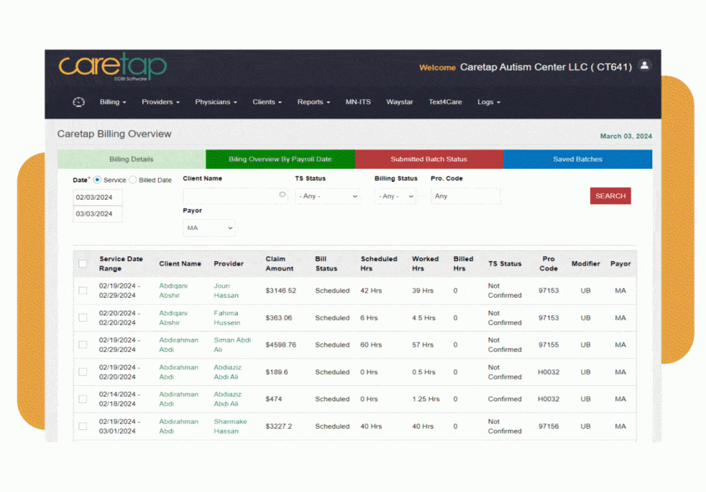Our Automated Billing and Electronic Claim Status Tracker keeps agencies on top of payments, and allows to instantly rebill the claims.