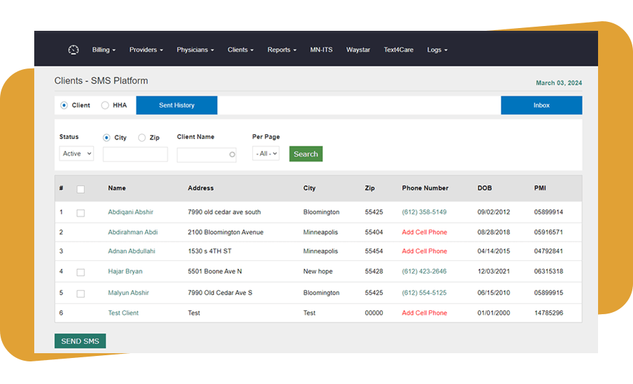 - Send mass texts to multiple caregivers at same time